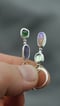 Green tourmalines and violet Australian opals set in silver and transformed into unique asymmetrical earrings. The pendants sway gently from delicate, hand-hammered hoops. Total length approx. 3.6 cm. Please leave a note if you wish to order the earrings with hammered (textured) hoops or smooth like in the last photo.